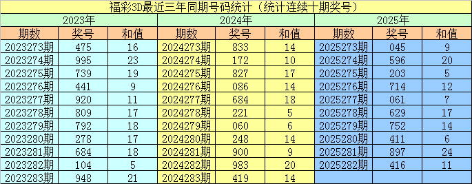 2024282期开奖号码:983;2025282期开奖号码:416