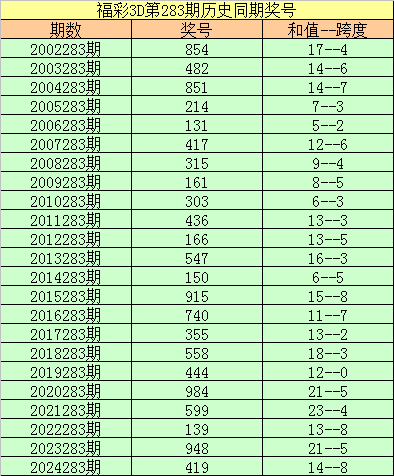 2024283期开奖号码:419